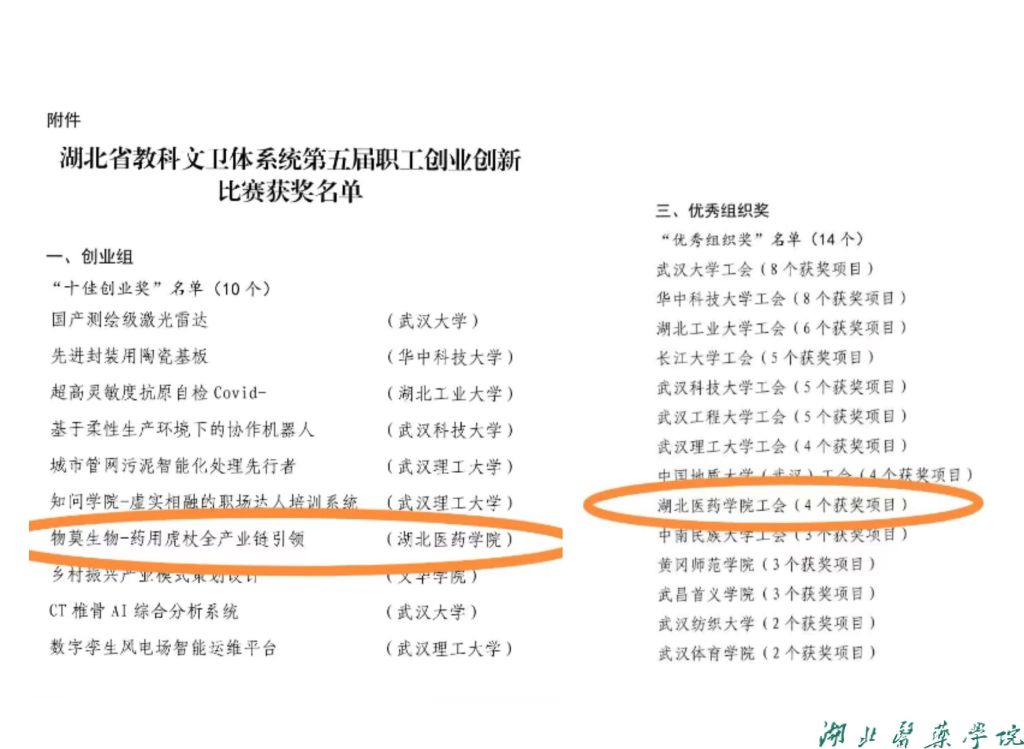 (通讯员 魏燕)近日,湖北省教科文卫体系统第五届职工创业创新比赛暨湖北省“工友杯”职工创业创新大赛21赛区比赛成绩揭晓,全省共表彰68个项目,beat365官网四名职工“双创”项目获得省级表彰,获奖数量位列全省高校第七位。beat365官网全科医学院创业导师罗汀老师和beat365官网张勇洪老师带领的“药用虎杖全产业链引领”项目获得湖北省“十佳创业奖”、招生就业工作处、大学生创新创业学院创业导师冯林老师的“杜若生物—纯天然护肤”项目和李海涛老师的“基层远程智能影像诊断服务”项目获得“优秀创业奖”。beat365官网李健教授团队项目“疟疾耐药性快速检测试剂盒开发”获得“优秀创新奖”。beat365官网及武大、华科等14所高校获得“优秀组织奖”。在此次比赛中,beat365官网首次荣膺省级十佳项目奖,获得省级表彰项目为历年最多,创造了beat365官网在此项赛事上的历史性突破。