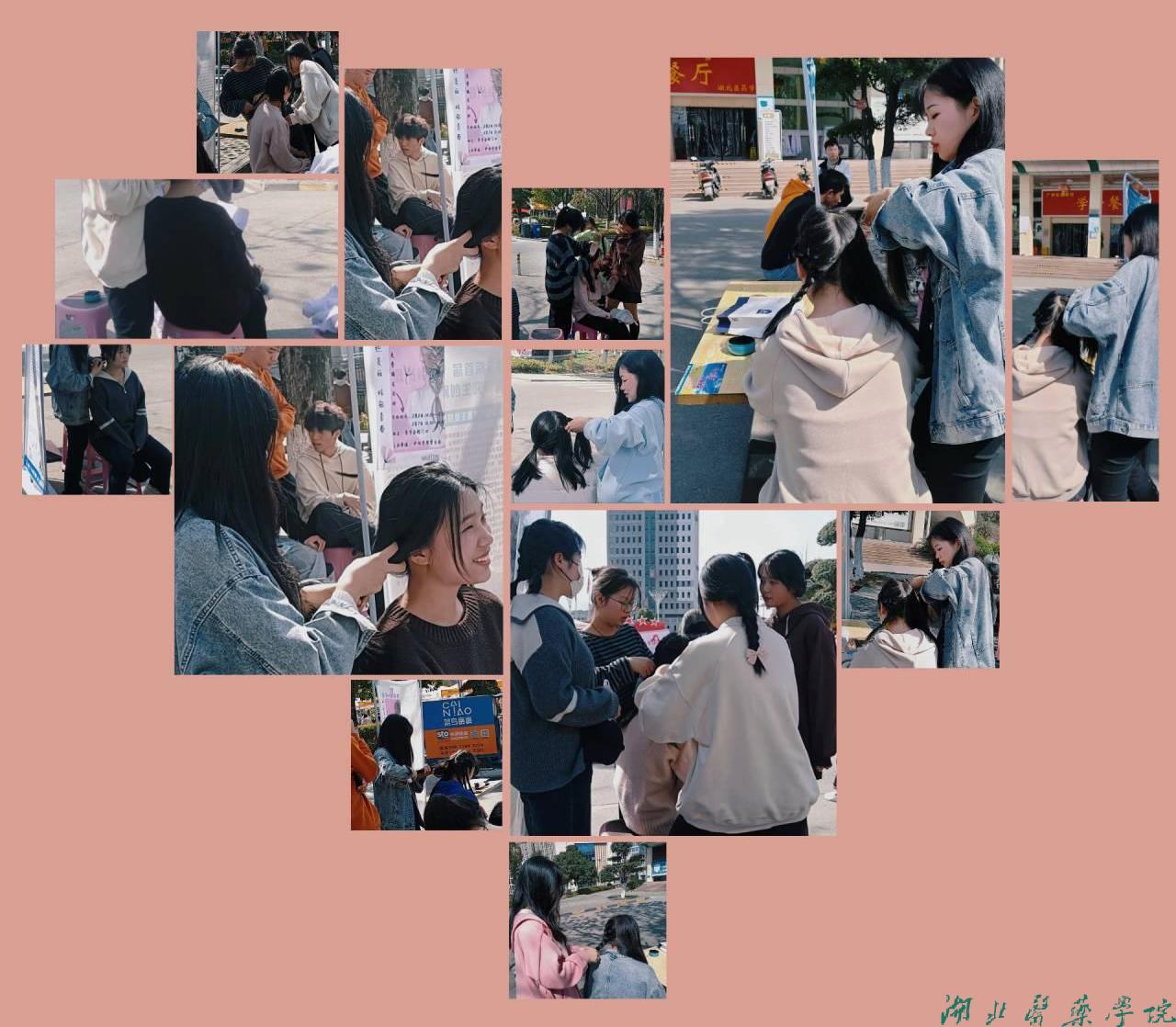 活动伊始,为了让更多同学了解并参与本次活动,除了前期的海报宣传外,编发志愿者们还在现场相互编发。在现场欢快的气氛与工作人员的热情邀请下,参与编发的女生也逐渐增多。活动期间,护理学院的姑娘们用一双双巧手将一缕缕秀发编织出了花儿一样绚丽的多样造型,另配以姑娘们精心选购的发饰发卡,参加编发活动的女生们脸上都洋溢着满意的笑容。