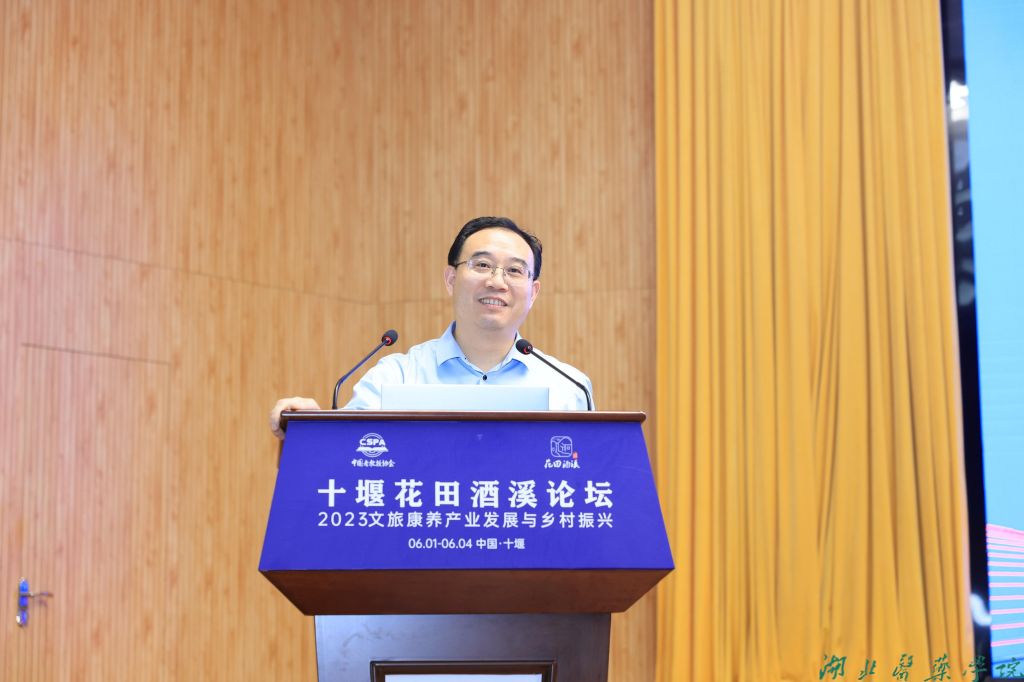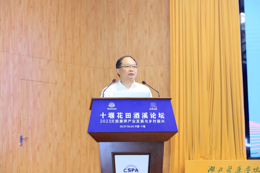 十堰市委常委、市委秘书长蔡贤忠对莅临大会的专家、学者表示热烈的欢迎,十堰拥有武当山、丹江水和汽车城三张世界级名片,同时是鄂豫陕渝区域医疗中心,未来十堰将充分发挥本地良好的生态、气候、文化、医疗等优势,坚持融合发展理念,大力推进高端医养休闲疗养产业。希望各位专家学者为十堰发展,特别是围绕文旅康养和乡村振兴多建睿智之言,多献务实之策,助力十堰高质量发展,书写中国式现代化的十堰篇章。