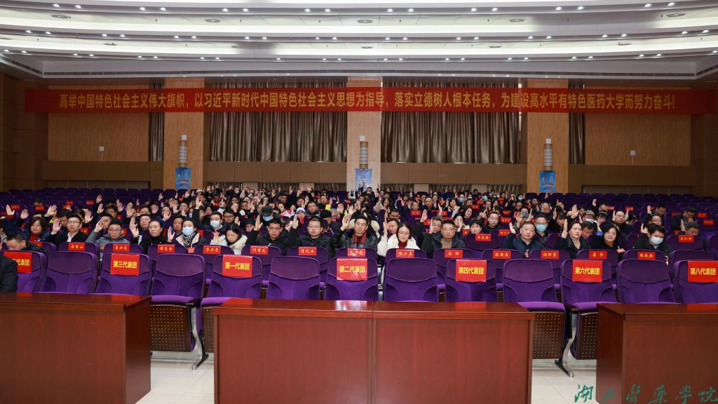 大会强调,新的一年,让我们高举习近平新时代中国特色社会主义思想伟大旗帜,牢牢把握教育强国战略方向,以立德树人为根本任务,团结依靠师生、勇扛历史重担、系统谋划布局,推进高水平有特色医药大学建设目标从“大写意”进入“工笔画”,从规划图转化为实景图,和衷共济、踔厉奋发,勇攀高峰、共赴卓越,全方位推动各项事业高质量发展,奋力谱写中国式现代化建设的湖医药新篇章。