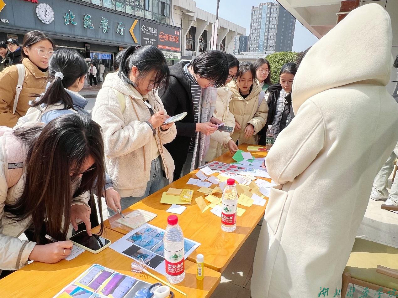 上午9点,活动现场气氛热烈。文明广场上,学院青年志愿者协会通过猜字谜、写便利贴寄语等方式,帮助同学们了解女性在中华民族浩瀚历史进程中所作出的贡献。在精勤活动社区,学生会通过“透过眼睛读懂她”“见花如面,向美而生”等活动来提升同学们对女性权益问题的关注。