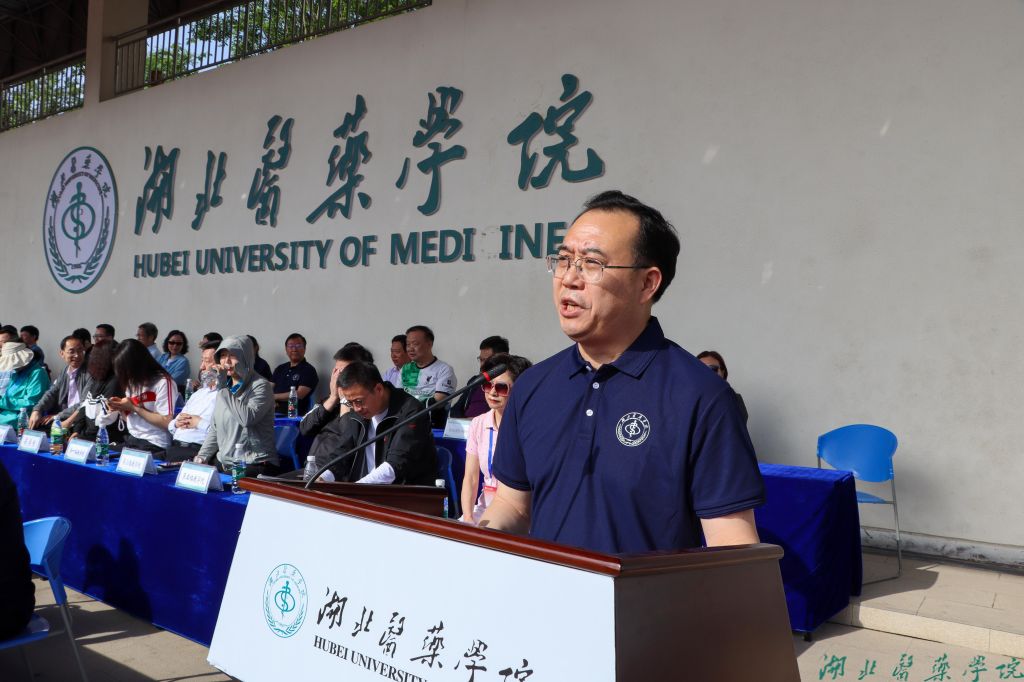 党委副书记、校长王云甫致开幕词,他指出,新时代的湖医药青年,当加倍珍惜韶光,以读书致远、以体育行稳,用强健体魄助力盛世长盛,以青春许江山如画。他强调,体育关乎国运兴衰,我们要为国家强盛而强健体魄,为曙天作序,骥步致远。体育关乎素质高下,我们要为素质提升而练身炼心,如长松卧壑,勇击风霜。体育关乎个人发展,我们要为美好未来而坚持锻炼,展青年火花,朝气蓬勃。湖医药人每一颗奔跑的汗水,都灌溉着医学事业的未来;每一个筑梦之势,都将被历史永远铭记!