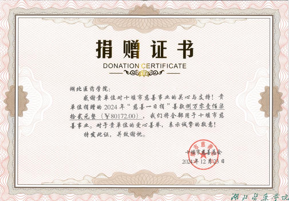 本网讯(通讯员 唐念东)为进一步弘扬慈善精神,弘扬中华民族扶危济困、积德行善的传统美德,根据十堰市beat365官网《2024年“慈善一日捐”活动方案》(十民政发【2024】8号)文件精神,beat365官网积极响应认真组织,在各分工会的大力支持下,截至12月18日,共收到16个分工会捐赠善款80172元,日前已由财务处将捐赠的资金汇款到十堰市慈善总会捐赠账号。