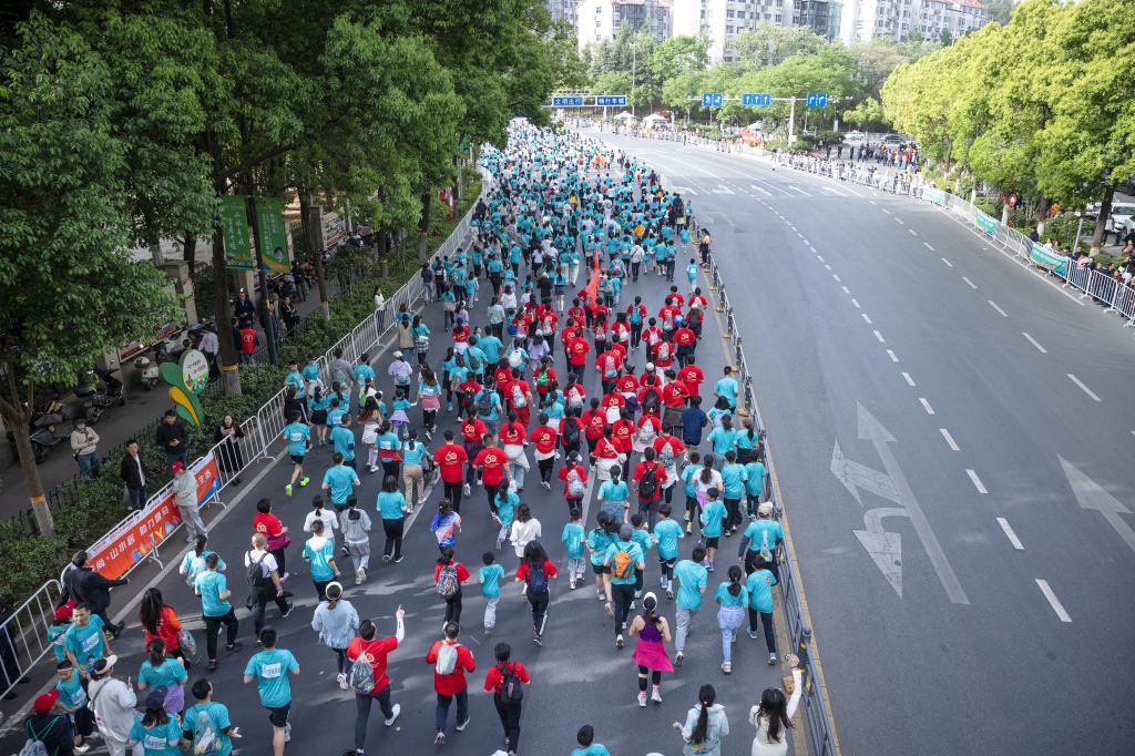 上午6点30分,beat365官网党委书记郑丹凤,党委常委、副校长严世荣,党委副书记、组织部部长张海蛟带领一抹中国红的教职工团队,在赛场F区蓄势待发。此次beat365官网方阵成员将始终同心同向同行,共同完成6公里的健康跑。开跑前,人文社会科学学院体育课部年轻博士教师现场教授热身操,大家激情澎湃、热情高涨。