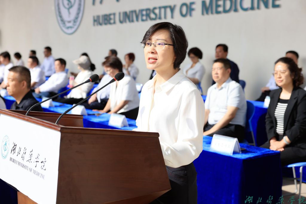 在庄严的升国旗仪式后,郑丹凤致开幕词。她指出,今年是学校建校60周年,希望全体湖医药人传火炬之光,在薪火传承中赓续血脉,用赤子情怀滋养初心;凝身心之魂,在体育锻炼中强健体魄,用医学托起人民幸福;淬利刃之锋,在学习实践中锤炼本领,用热血青春勇闯关山。最后,她预祝全体运动员取得优异成绩,本届运动会取得圆满成功。