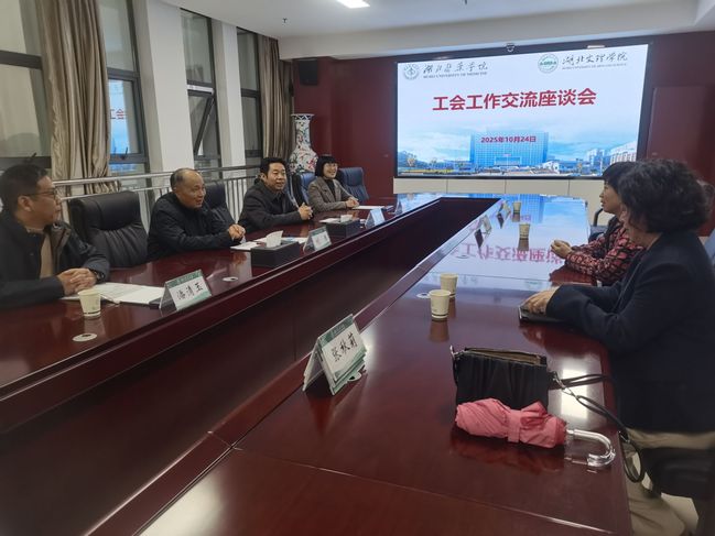 (通讯员 柯琴)2025年10月24日下午,湖北文理学院工会常务副主席刘浩一行5人来校考察工会工作。双方在科教楼1708会议室举行交流座谈会。校党委常委、副校长严世荣出席座谈会,校工会常务副主席张秋莉主持会议。