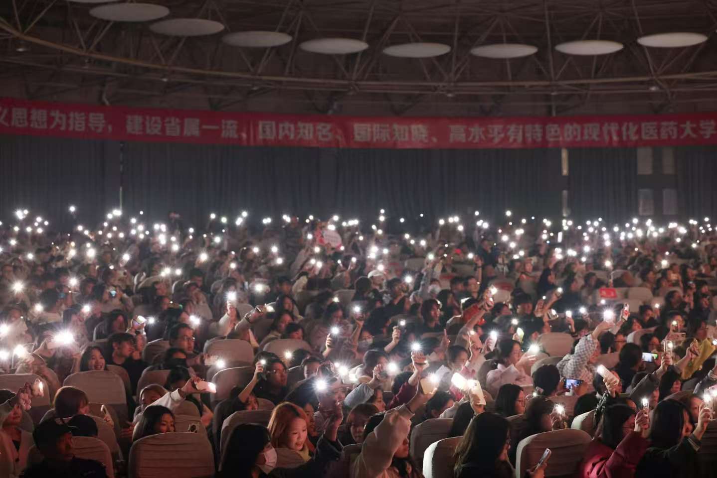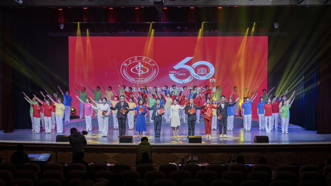 课堂还融入了舞蹈、音诗画、歌曲串烧等多元形式,生动演绎了六十年的风雨兼程与代代人的初心不改。当那些亲历并铸就六十年辉煌的身影登上舞台时,全场师生无不动容。师生们不约而同打开手机灯光致敬先辈精神,点点灯光汇聚成璀璨星河,照亮了现场,更照亮了传承之路。“这里有一群白衣天使翱翔,人世间汇聚那医学荣光……”课堂最后,全体师生齐声高唱《beat365官网校歌》。激昂的歌声既是对学校六十年荣光与担当的崇高致敬,更是全体湖医药人以奋进昂扬之姿,迈向新征程的豪迈宣言。