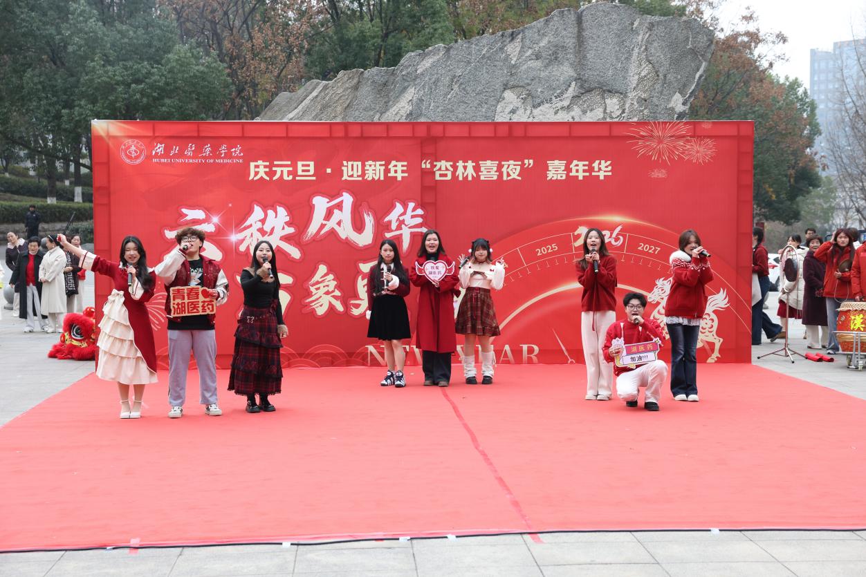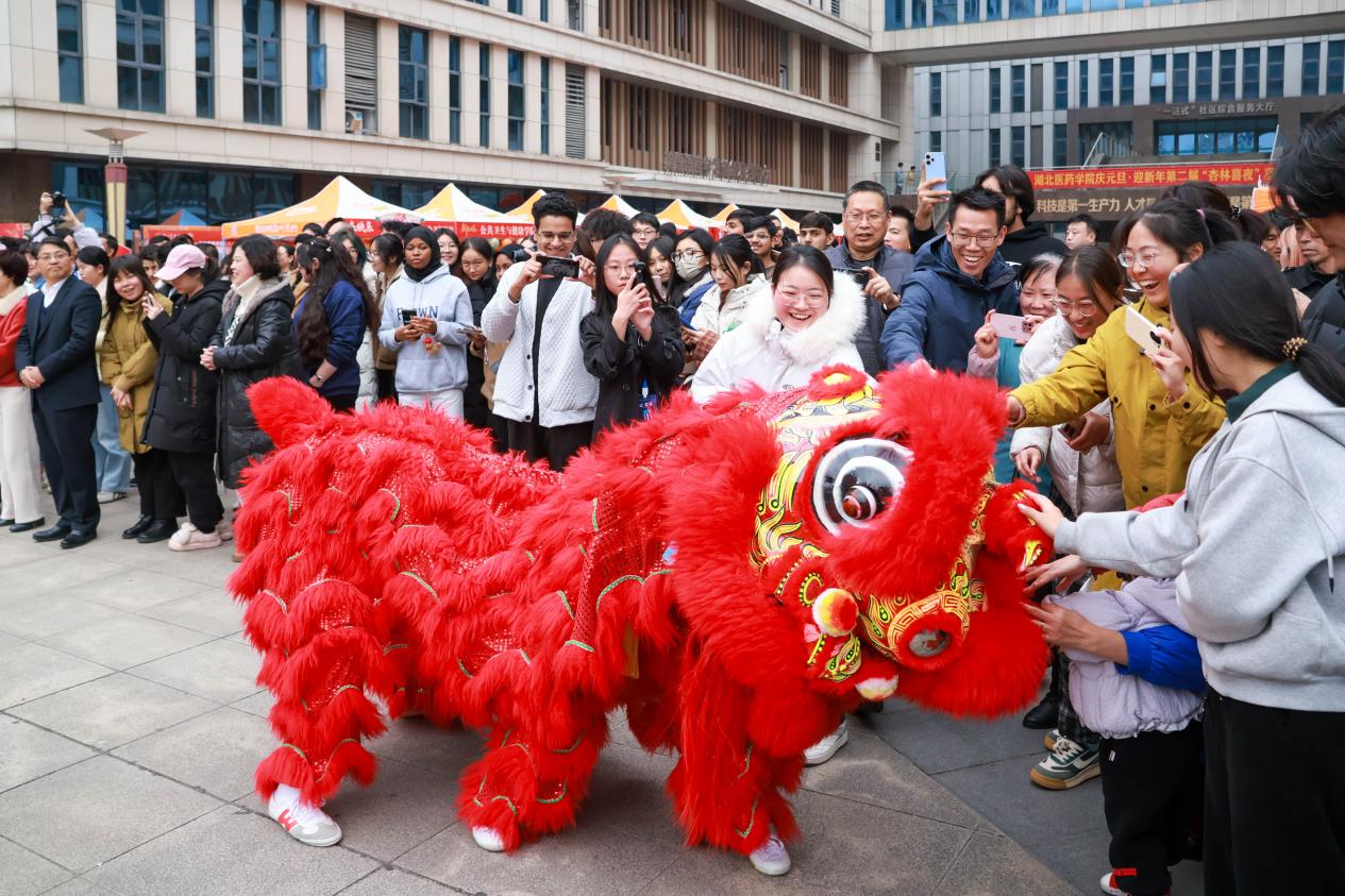 本次活动以传统文化为底蕴,融入医学专业特色和现代趣味元素,精心打造了“吉瑞街”“吉祥街”“吉庆街”三条主题文化街区和美食街区。学生社团与教职工同台献艺,合唱《新年快乐》、舞蹈《爆竹声声响》、走秀《禅韵》、舞狮表演《贺新年》、歌曲《相亲相爱》等精彩节目轮番上演,拉开了活动帷幕。